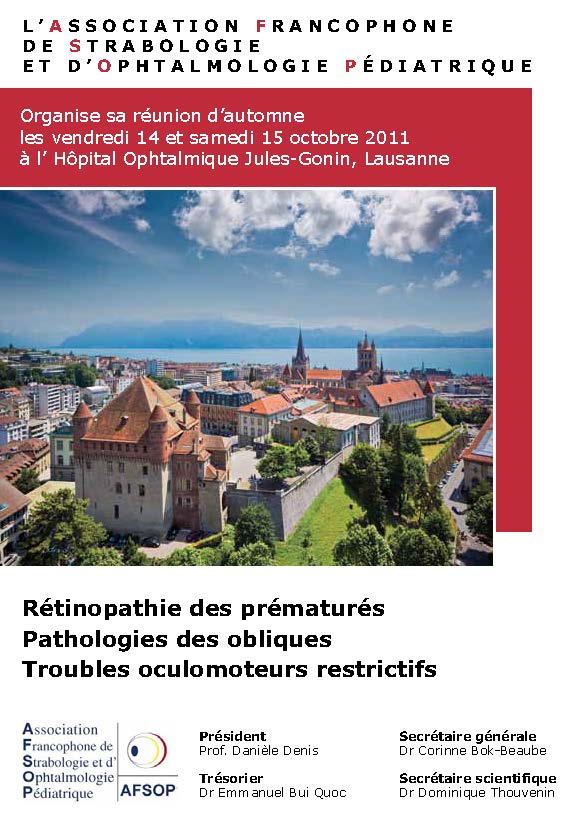 Thèmes : - Amblyopies - Strabismes - Dépistage des Maladies visuelles de l’enfant Les thèmes d’ophtalmopédiatrie et de strabologie étaient résolument pratiques et cliniques.